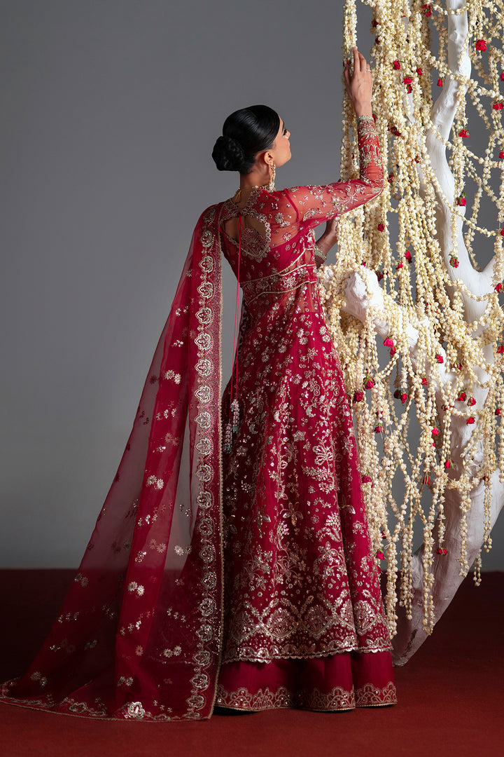 The front and sleeves gleam with embroidery and hand embellishments of crystals, kashti, cut dana, pearls, and baithki, while a lace-finished hem lends refinement to its grandeur.